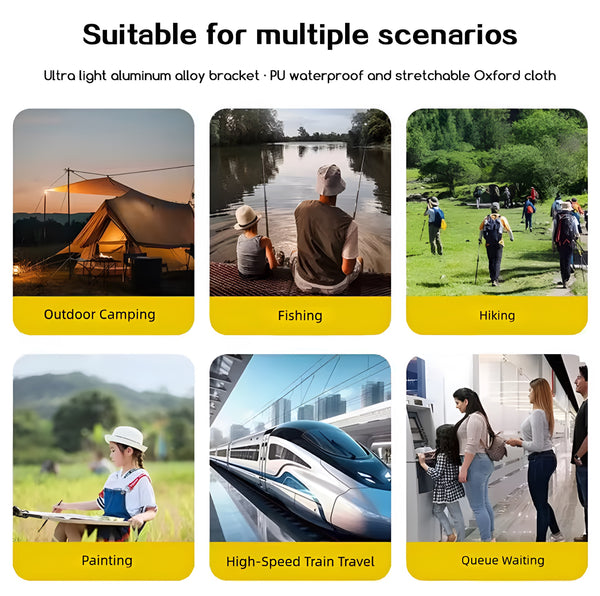 No more carrying bulky chairs! This foldable backpack stool is light as a feather, making your travels carefree and enjoyable. Now, you can focus on the adventure without the heavy load, thanks to its portable and compact design.